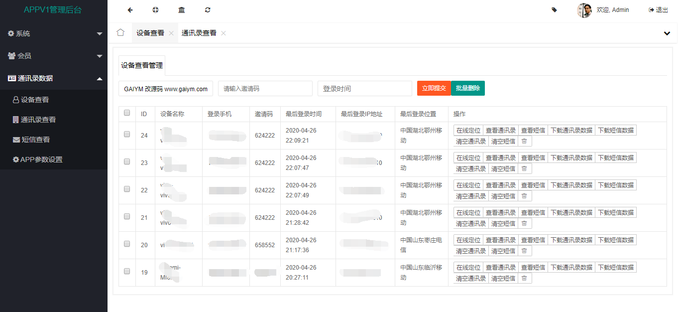 【首发】经允许获取通讯录源码 获取通讯录定位短信老赖*克星实时监控