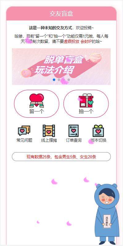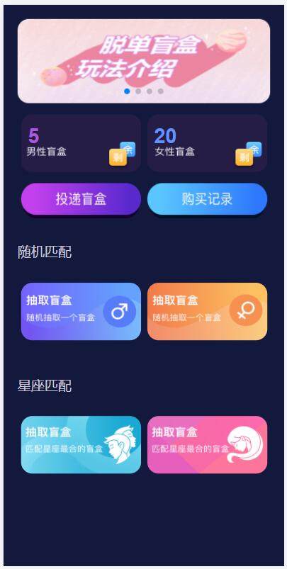 解授权版/H5脱单盲盒交友/分销提现/存取小纸条盲盒匹配管理平台/免签支付/封装app