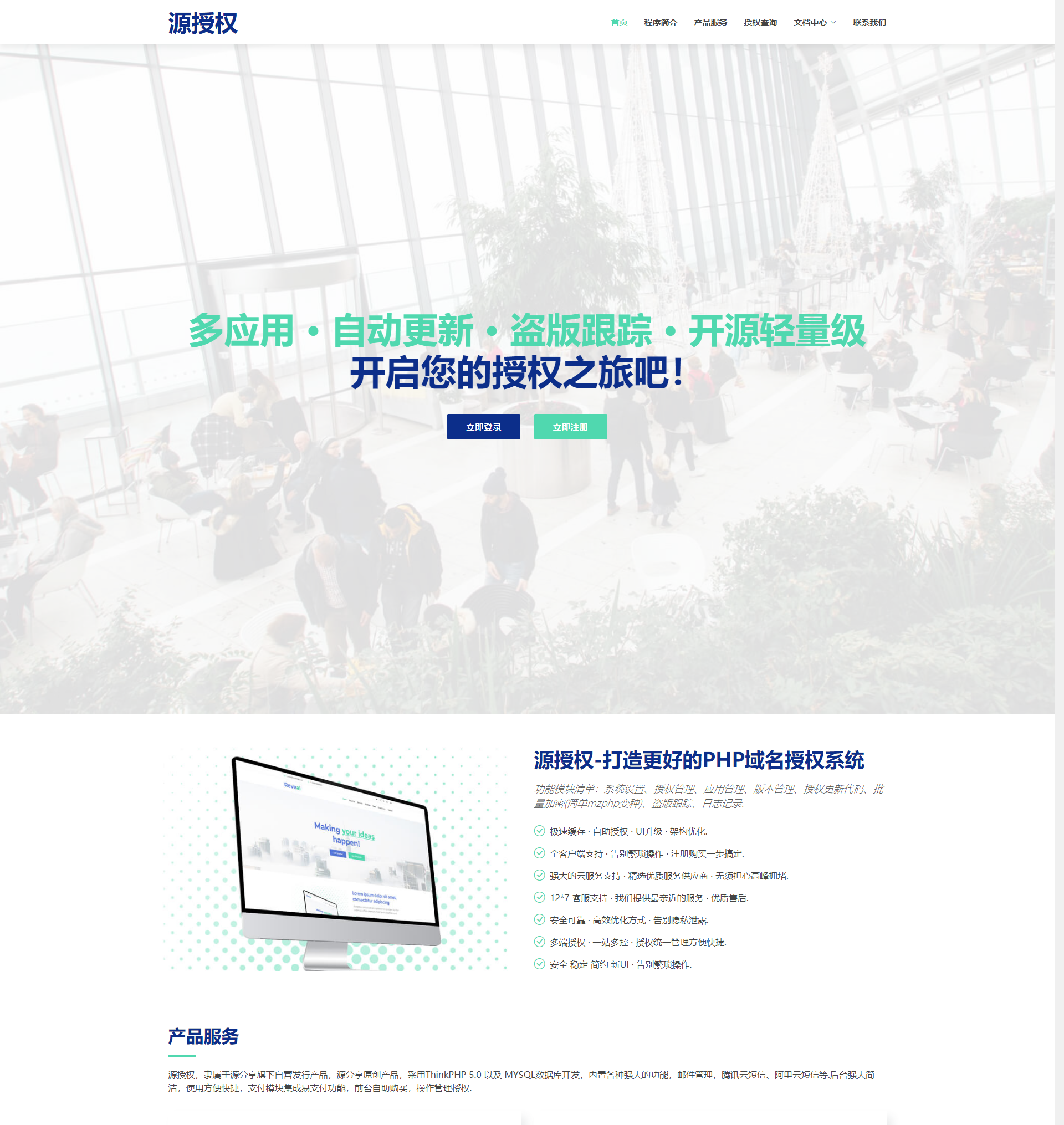 2021全新架构的授权系统.采用ThinkPHP 5.0开发,内置各种强大的功能,邮件管理,云短信、阿里云短信等.后台强大简洁,使用方便快捷,支付模块集成易支付功能,前台支持自助购买和1作管理授权!