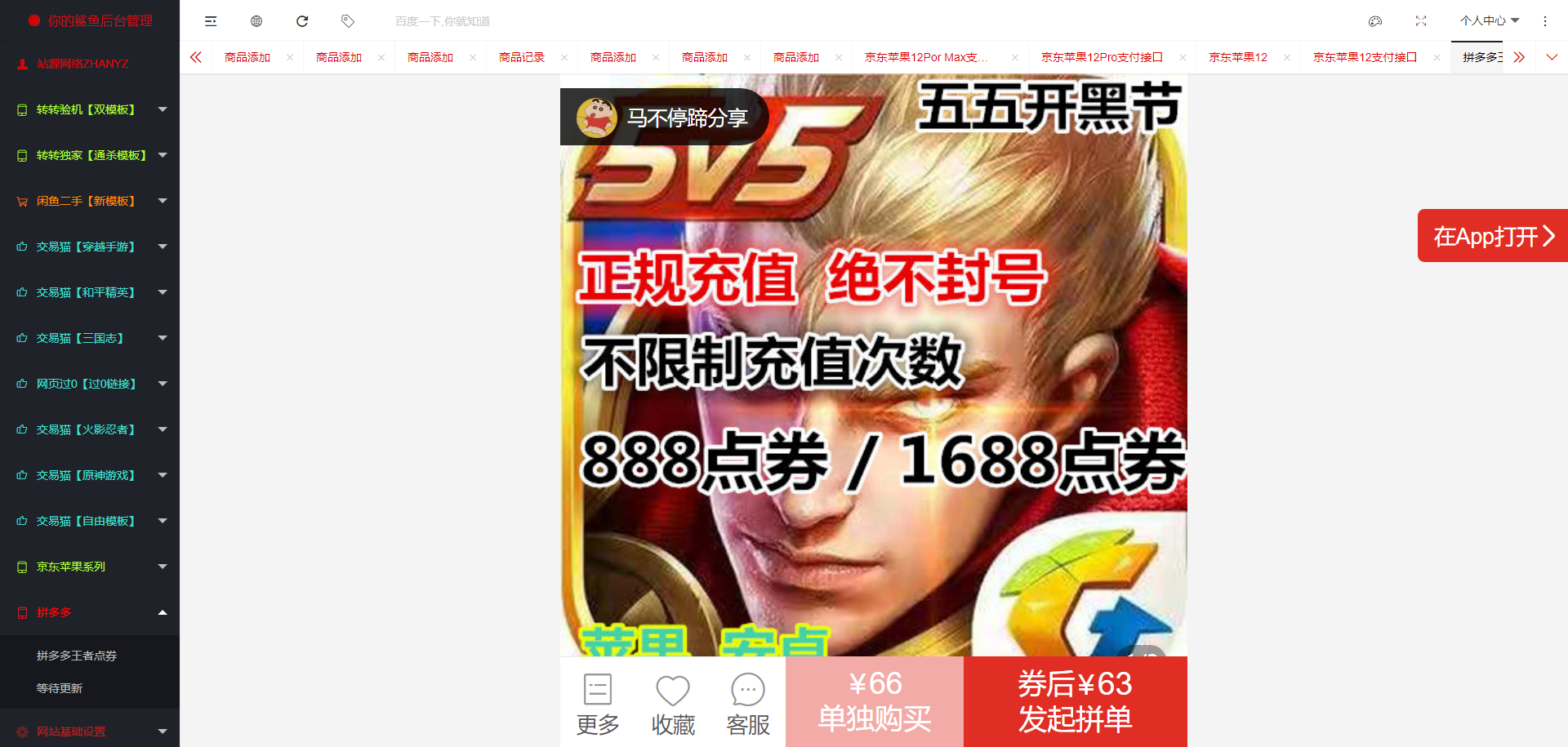 2021年最新防转转双模板/闲鱼交易猫/京东/拼多多/13和1无授权版本