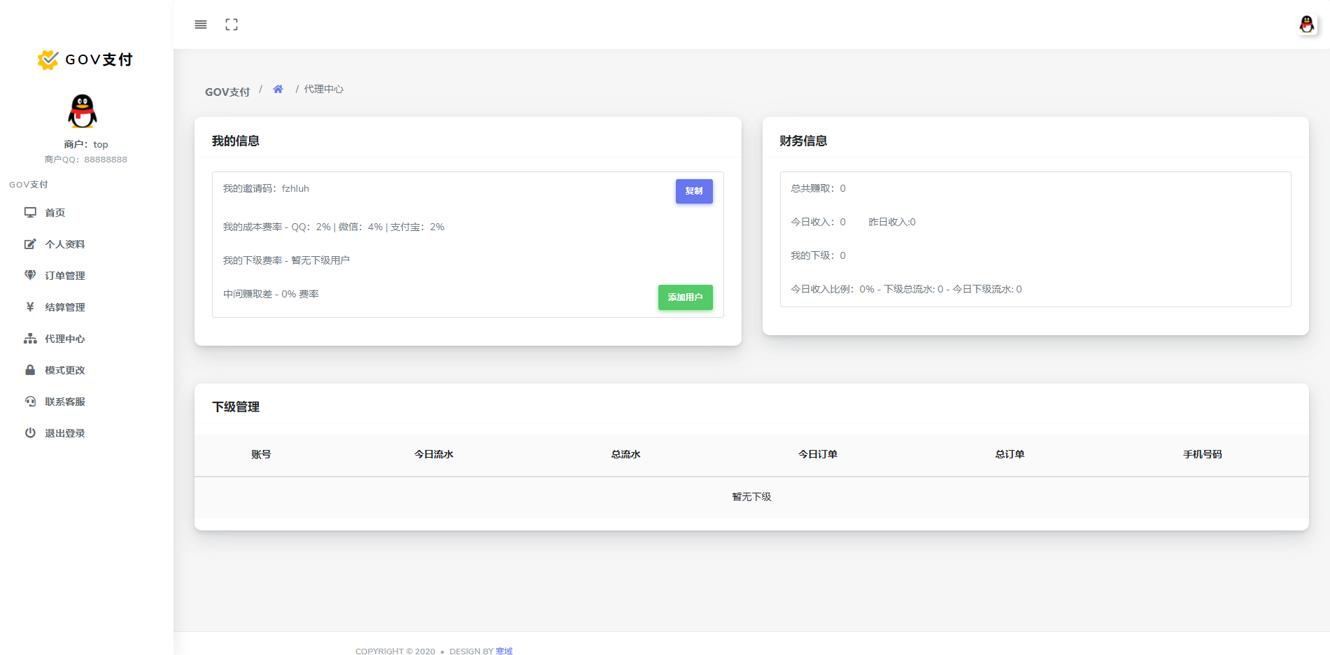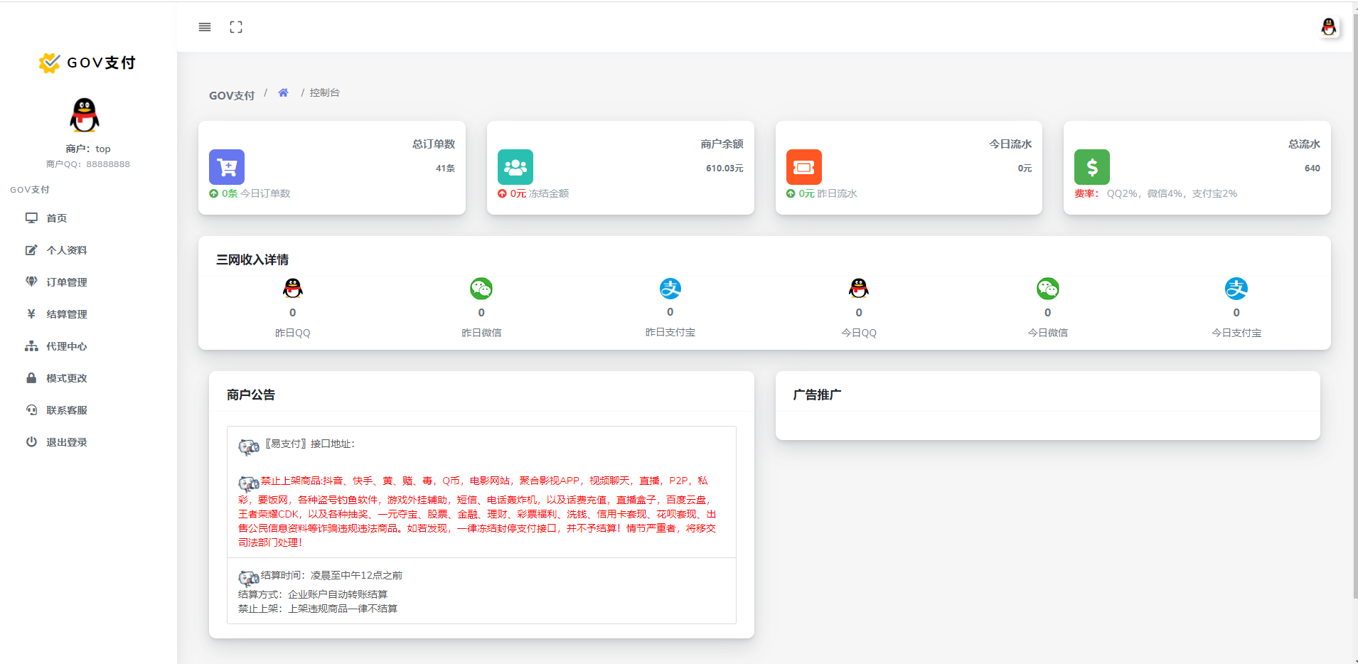 【帐号类型】系统后台多类型管理员、商户代理、普通商户、接口用户;对用的板块后台都不一样相关的数据统计齐全有效。