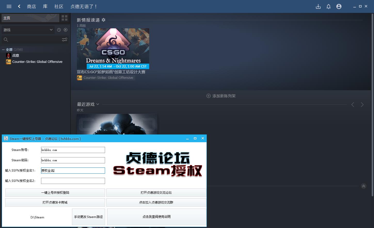 91吃瓜网 » <贞德团队出品> Steam一键上号授权器 [ 快速上号 ] [ 云端授权 ] [ 永久免费 ]