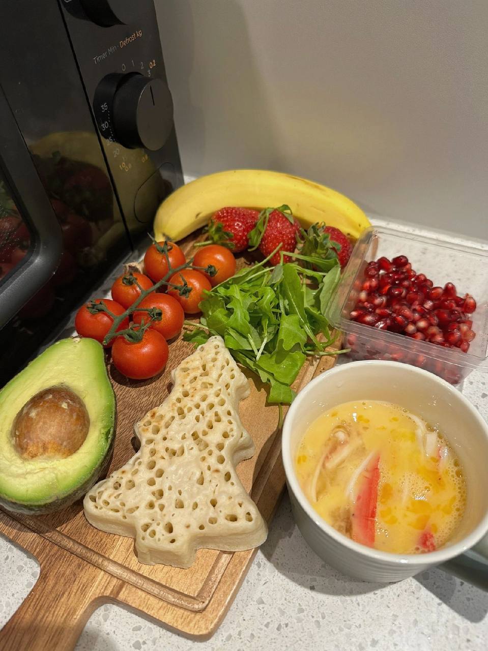#英国 ?? #美食 #早餐 Christmas Brunch 做個繽紛又營養的聖誕早餐? 酪梨聖誕樹鬆餅 蟹柳滑蛋 草莓香蕉聖誕老人 聖誕沙拉 酪梨聖誕樹鬆餅: ?️食材 酪梨 石榴 青醬 聖誕樹鬆餅 ?步驟 -半顆酪梨搗碎成泥 -加入鹽/胡椒/一小勺青醬調味 -鬆餅放微波爐加熱2分鐘 -將酪梨醬塗抹於鬆餅並灑上石榴裝飾即可