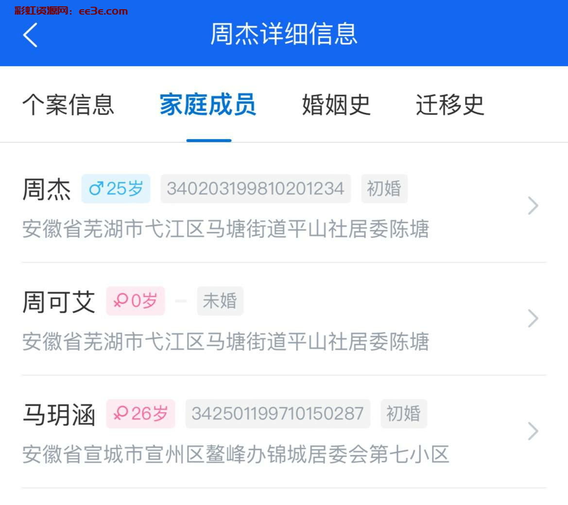 家庭成员3: 周杰 340203199810201234