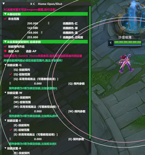 目前仅换肤  绘制自身范围  还有全英雄技能预判释放! 后续看情况加 稳定新功能吧