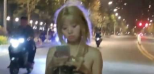 广州女菩萨 婷婷 珠江边闹市街头全1露出漫步 身后一群围观群众惊动警察