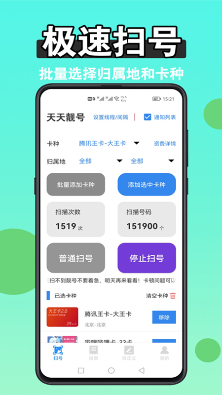 [backcolor=rgba(255, 255, 255, 0.15)]软件介绍:【天天靓号】一款最专业手机靓号扫号工具,可以多线程扫全国各地所有主流卡种靓号!支持扫多种类型,支持自定义,支持一键下单,订单查询等,扫到靓号直接一键下单!简单、易懂,适合所有人群使用!